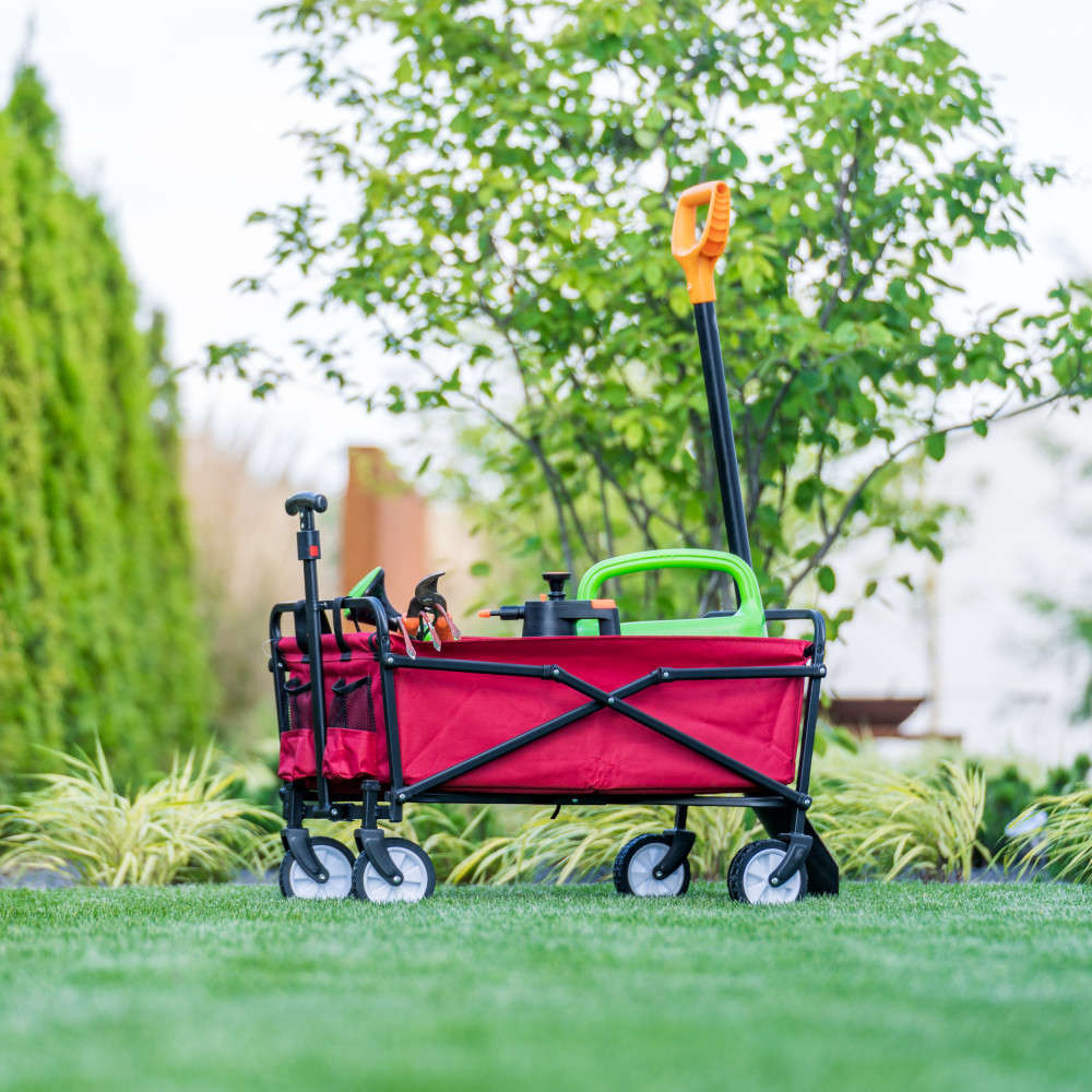 A szállítókocsik hasznosak a kerti munkálataink során. Az összecsukható kerti kocsi sokkal könnyebbé teszi a nehezebb terhek szállítását.