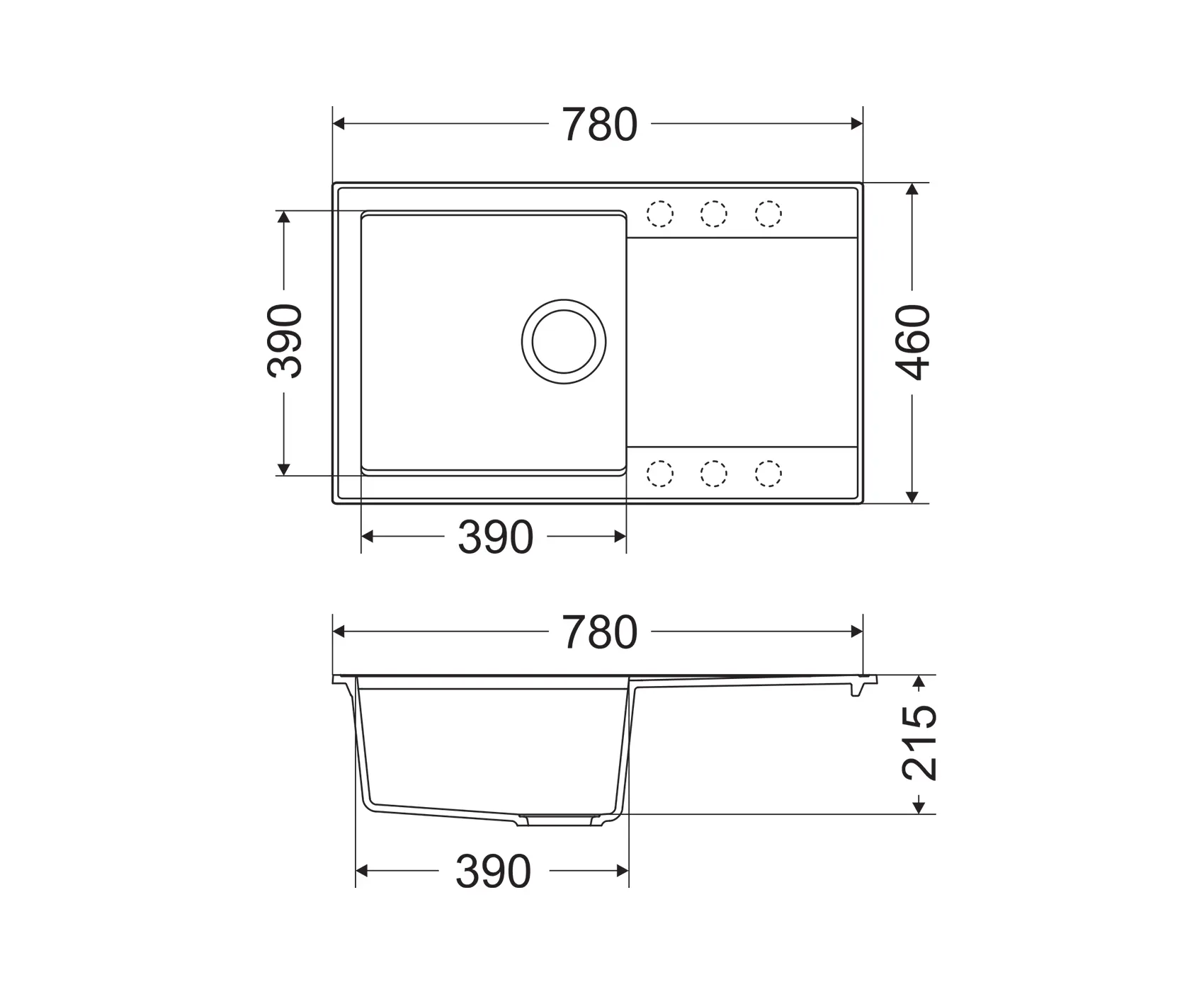 • 1 medence, 1 csepptálcás gránit mosogatótálca