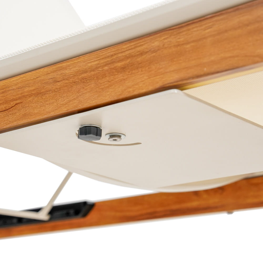 A kerti nyugágy váza porszórt alumíniumból készült, ami garantálja az időjárás viszontagságaival , beleértve a nedvességet és az UV-sugárzást is, szembeni ellenállását. Ennek köszönhetően a bútor kivételesen tartós, korrózióálló, és idővel sem veszíti el esztétikus megjelenését.