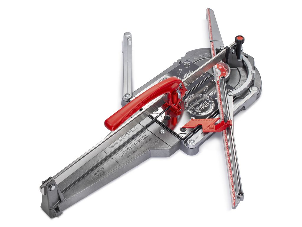 Montolit csempevágó Masterpiuma 75 cm A MONTOLIT Masterpiuma gépek legújabb sorozata a P5 széria. A könnyű alumínium alaptest a legnagyobb igénybevételnek kitett pontoknál plusz bordákkal van megerősítve, így optimalizálva a vágógép viselkedésést akár vastag vagy kemény anyagok vágásáról legyen szó. A meghosszabbított számsoros vonalzó jobbra és balra is elforgatható 45°-ban. Nagy pontossággal végezhetőek a párhuzamos vagy keresztirányú vágások. Az ismétlődő vágásokhoz használható kisderékszög rögzíthető és ebben az állapotban felhajtható, így nem kell a méretet elállítani ha esetleg egy nagyobb vágásra van szükség. Nagyméretű rugós lemez és mindkét oldalon kihajtható laptámaszok biztosítják a burkolóanyag tökéletes felfekvését a csempevágón. A speciális vágókar is egyedi megoldásokat tartalmaz. Ennek köszönhetően akár 20 mm vastag lapot vagy üvegmozaikot szeretnénk vágni, mindig a megfelelő karcolási- és törő erő áll rendelkezésre. A vágókarba integrált olajozó rendszer gondoskodik a könnyű és egyszerű használatról. Főbb jellemzők: Könnyű súly Precíz vágás Nagy törőerő Vágókarba integrált olajozó rendszer Praktikusan és egyszerűen szállítható Pontos és rendkívül erős, ergonomikus nyomógombos fogantyú. Vágás hossz: 750 mm Ferde vágáshossz: 530 mm Vágási vastagság: 0 – 20 mm Vágókerék mérete:16 mm Súly 14 kg