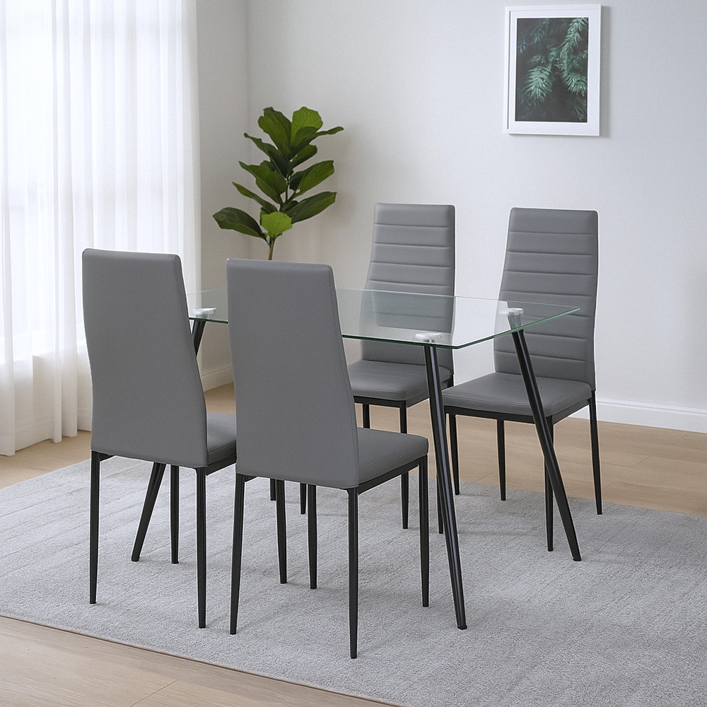 Nash 4+1 étkezőgarnitúra – Modern stílus szürke-fekete székekkel és edzett üvegasztallal
