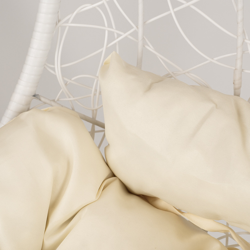 A kosár sűrű szövésű PE rattanból készül, amely az esztétitkai előnyök mellett, időjárásálló is. A fehér színű rattan anyag ellenáll a szélsőséges időjárási körülményeknek, így a függőfotel hosszú távon is megőrzi szépségét.