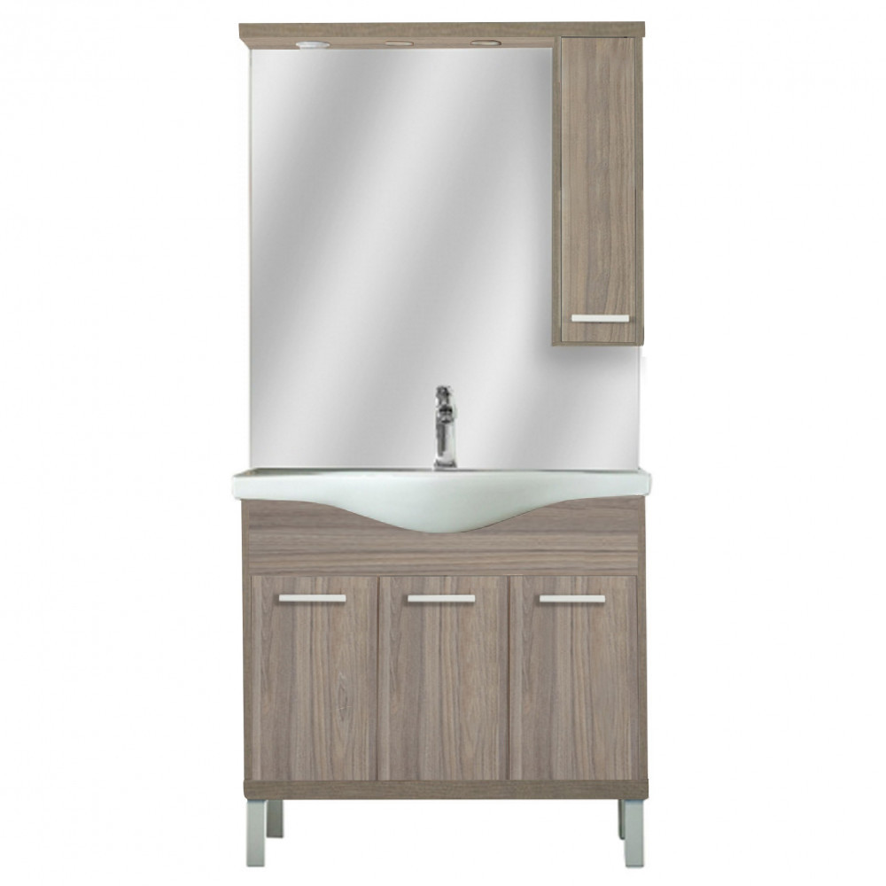 A fürdőszobabútor kevés helyet foglal viszont tágas alsó és felső szekrénnyel rendelkezik, ahol kényelmesen elférnek a fürdőszobai pipere eszközök. Kevés helyigénye miatt kisebb fürdőszobák berendezésére is alkalmas, például panel lakásokban. A termék magas minőségű bútorlapból készül és színben passzoló élzárókkal van ellátva. A fürdőszobabútor mosdóval együtt kapható.
