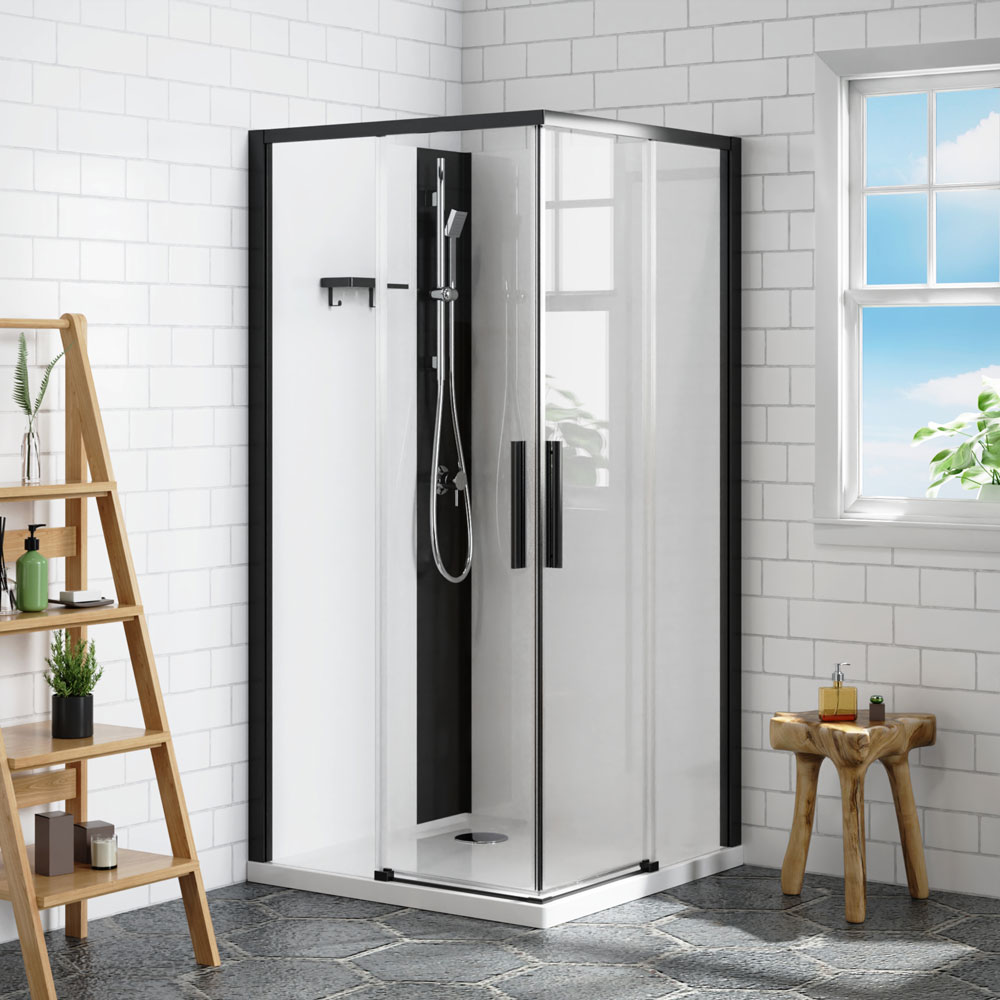 Niwell Tami szögletes hátfalas fekete-fehér zuhanykabin