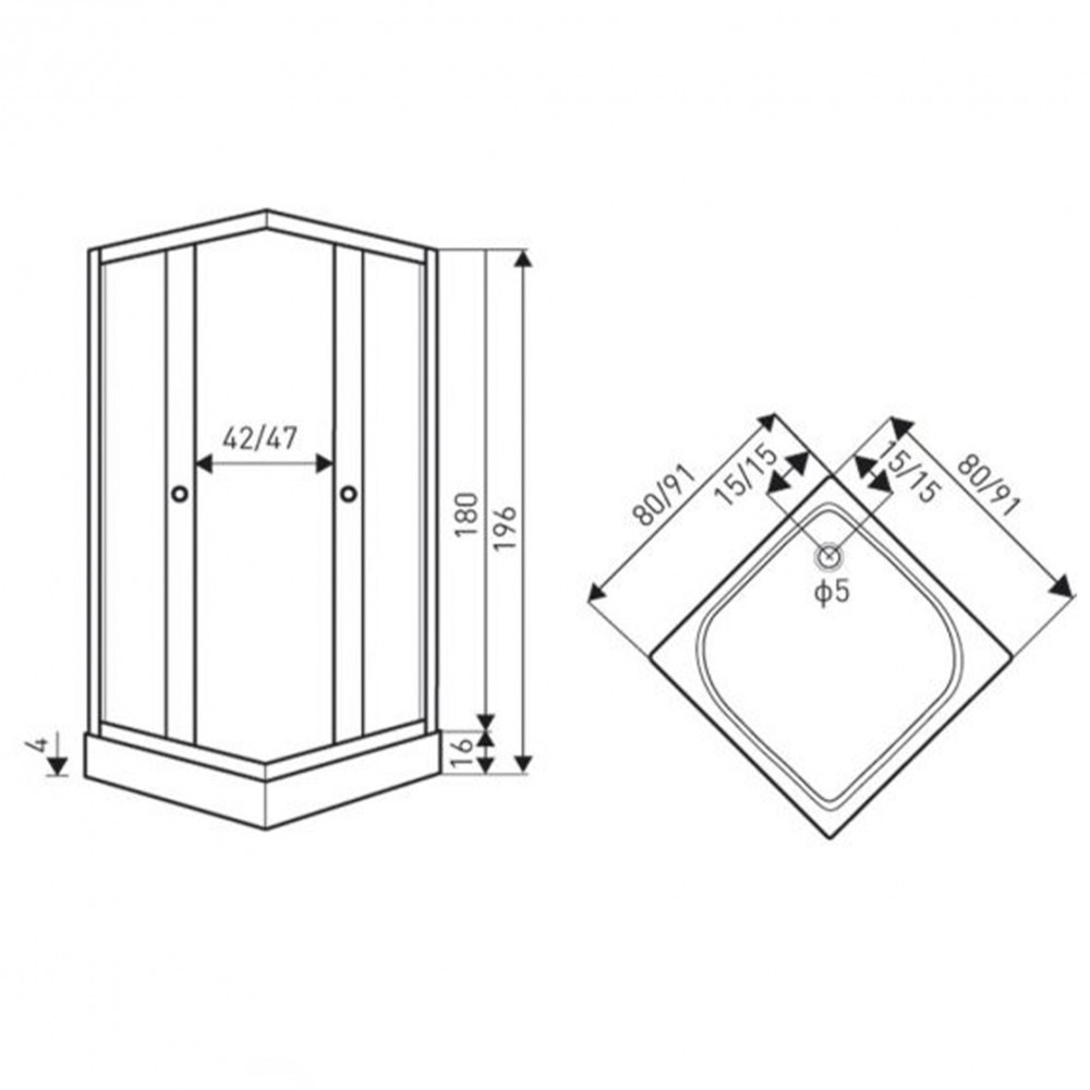 A zuhanykabin 4 mm-es edzett biztonsági üveggel van ellátva. A zuhanykabin szögletes kivitelben kapható. Dupla tolóajtóval van ellátva. A zuhanykabin 80x80x196 cm-es, a zuhanytálca 91x9x16 cm-es. Olga SQ Zuhanykabin zuhanytálcával kapható.