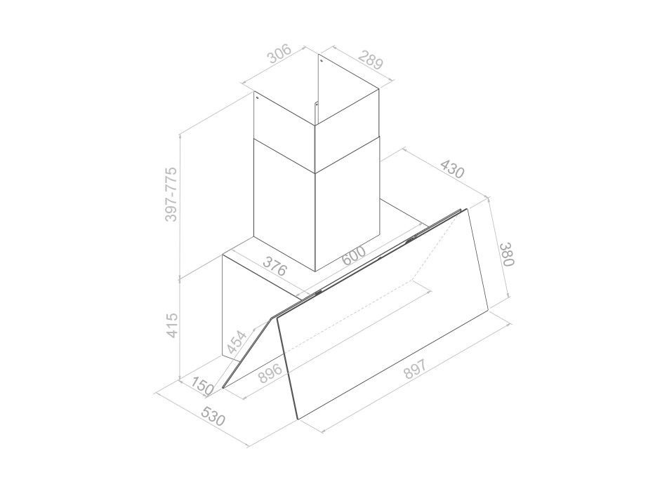 Pando P-725/90 fehér üveg döntött páraelszívó V.850
