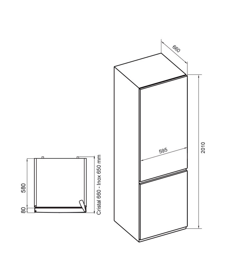 Pando PFLC COMBI szabadonálló hűtőszekrény, fekete üveg