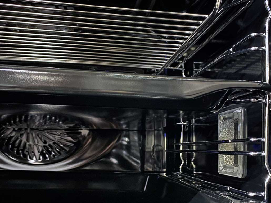 Sütőtér: 72 l, érintőszenzoros vezérlés, gyerekzár, ECO program, gyors előmelegítés, 11 sütési funkció, 5 sütőszint, gőztisztító rendszer, lapos és mély tepsi, sütőrács, 3 rétegű teleüveg ajtó, Soft Close, Satin fekete tömör fogó, belső LED világítás, Energiaosztály: A+