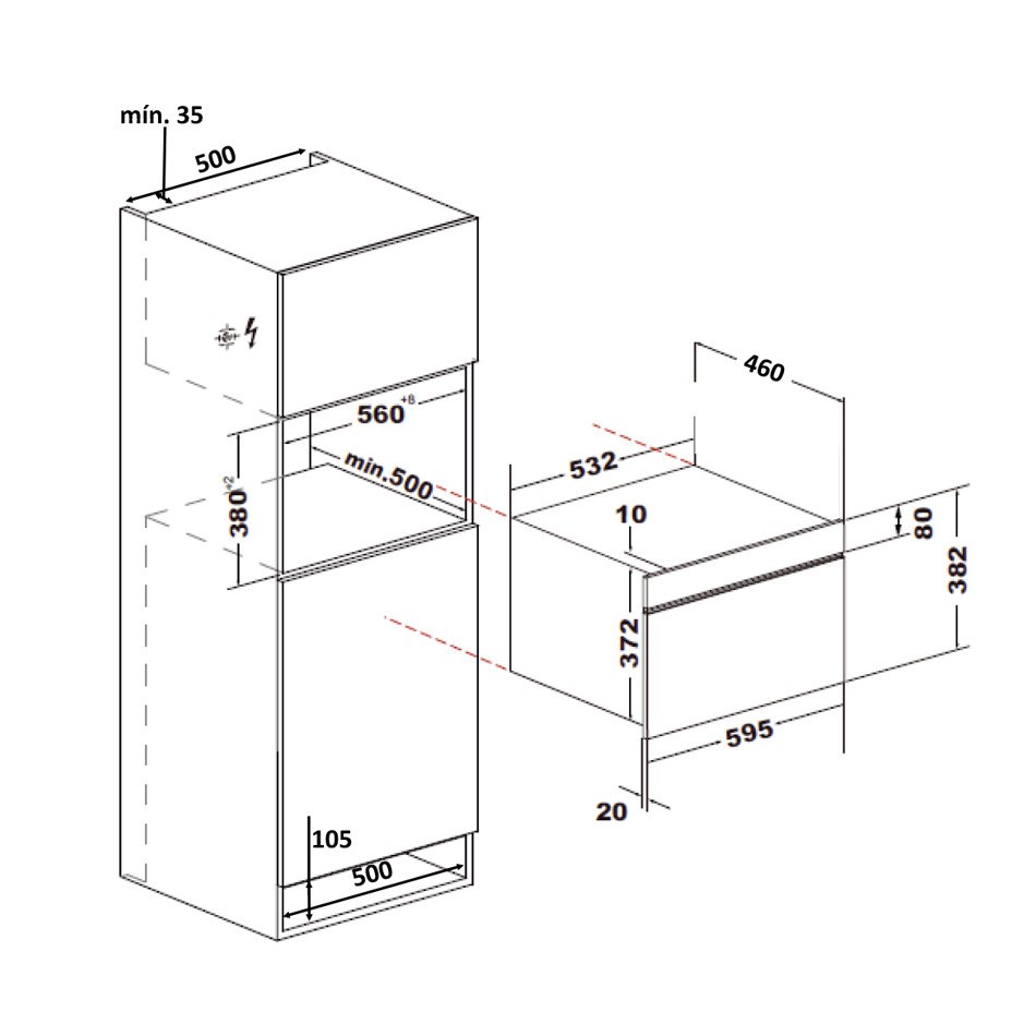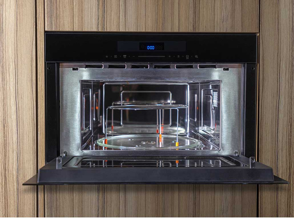 34 literes sütőtér Érintőszenzoros vezérlés 8 automata program, defrost, Időzítő: 0-90 perc Extragyors sütési funkció, Gyerekzár, Mikroh.: 90-900 W, Grill: 1450 W, speciális lehajtható inox belső, Soft Close ajtó, 38,2 cm magas