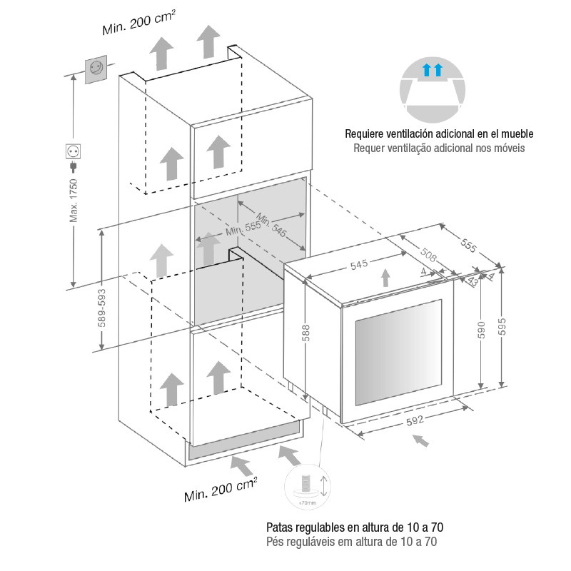 Pando PVMAP 60-25 PAR Borhűtő – beépíthető, jobbos