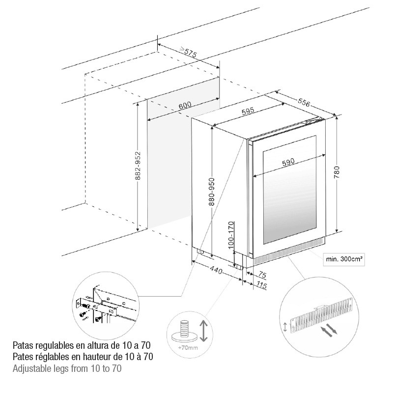 A borhűtő ajtókeretére bútorfront szerelhető!