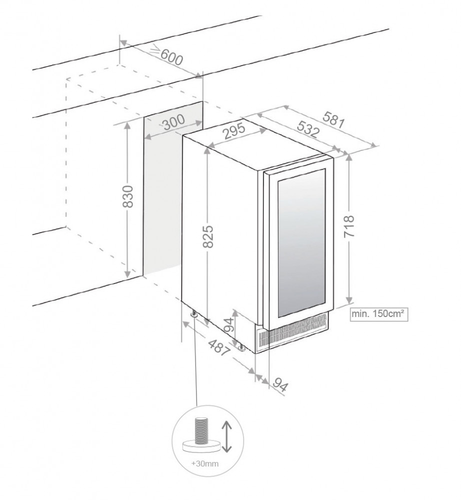 Pando PVZB 30-16CRL borhűtő – pult alá építhető, fekete, balos