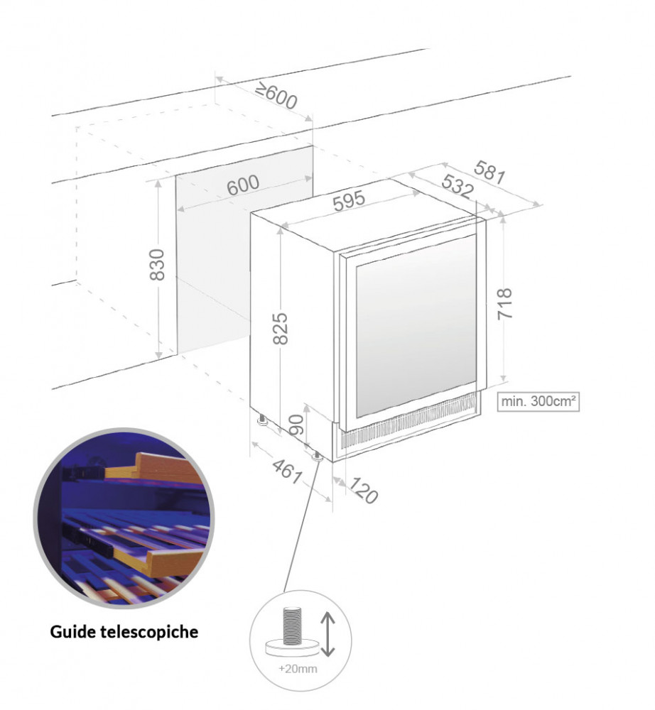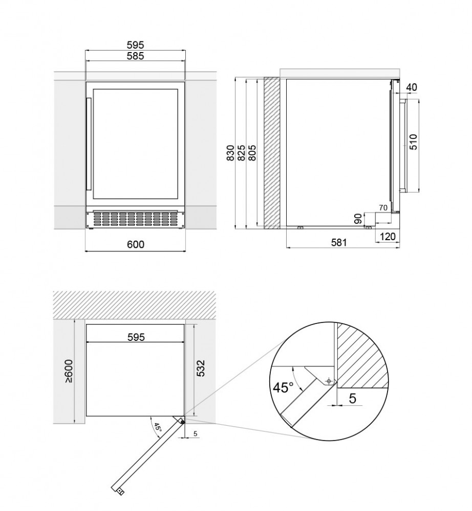 Pando PVZB 60-46CRL borhűtő – pult alá építhető, fekete, balos