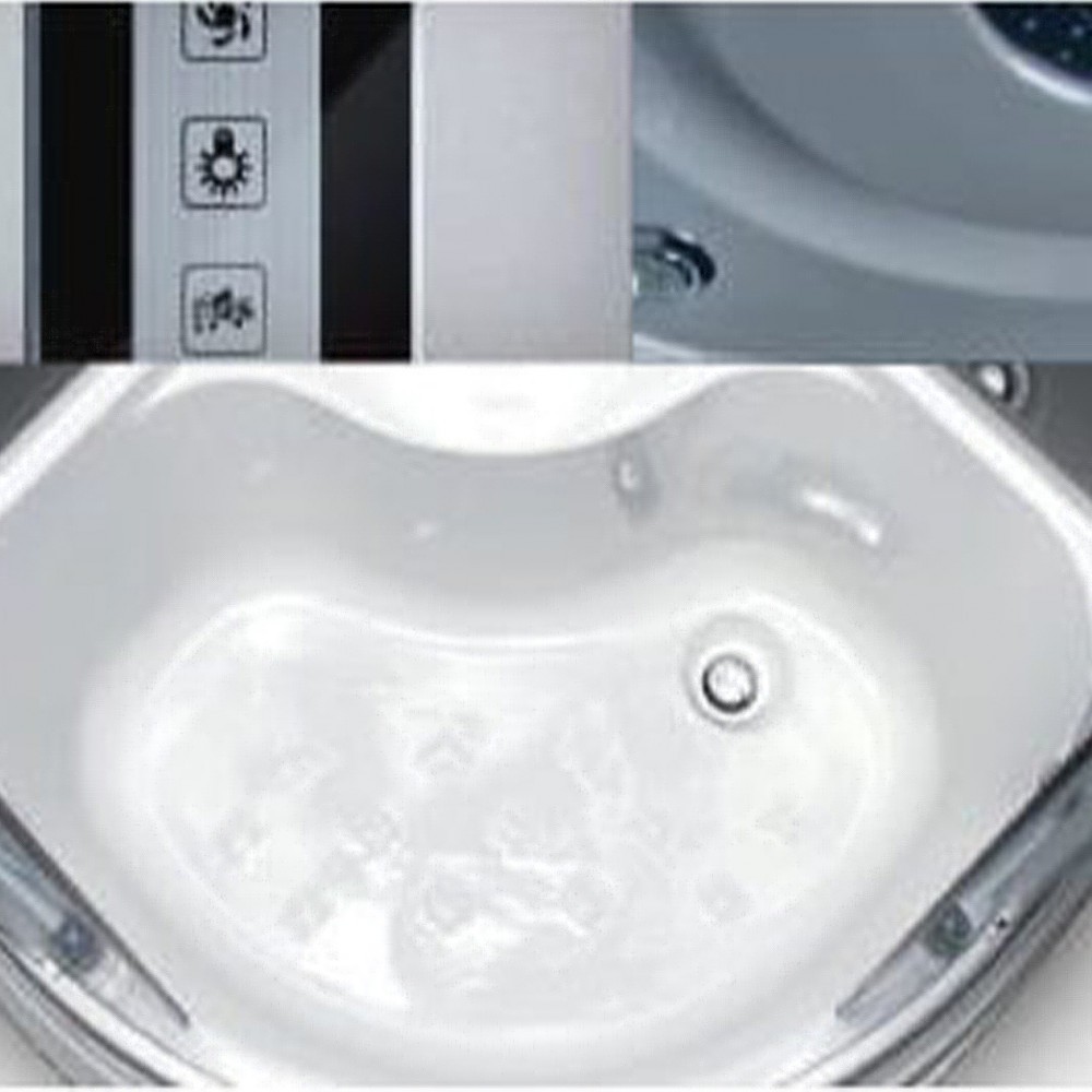 Felszerelés: 3 fix hidromasszázs fúvóka, esőzuhany (a tetőben), halogén világítás, érintőpanel, ventilátor, üvegpolc, rádió