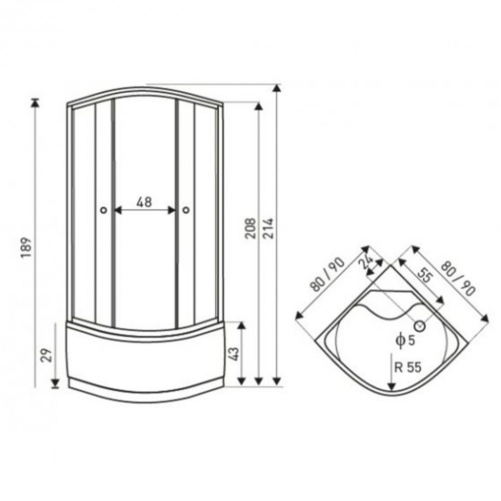 A zuhanytálca méretei: