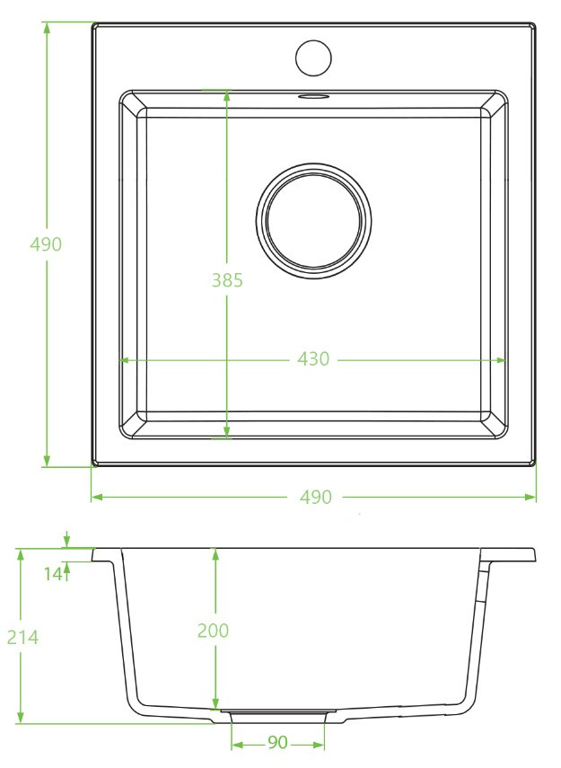 PAULO gránit egymedencés szürke mosogató szifonnal, 49x49x21,4 cm
