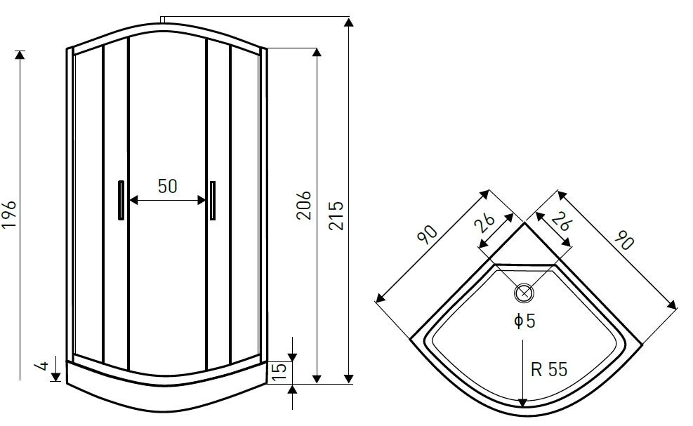 • Zuhanytálca méretei: 90 x 90 x 15 cm