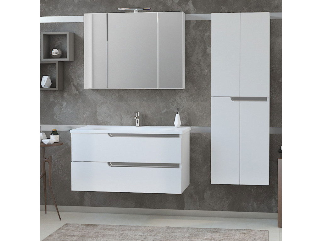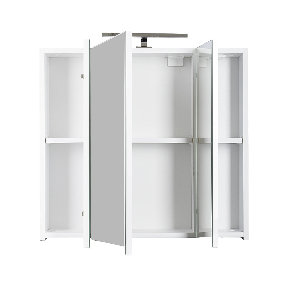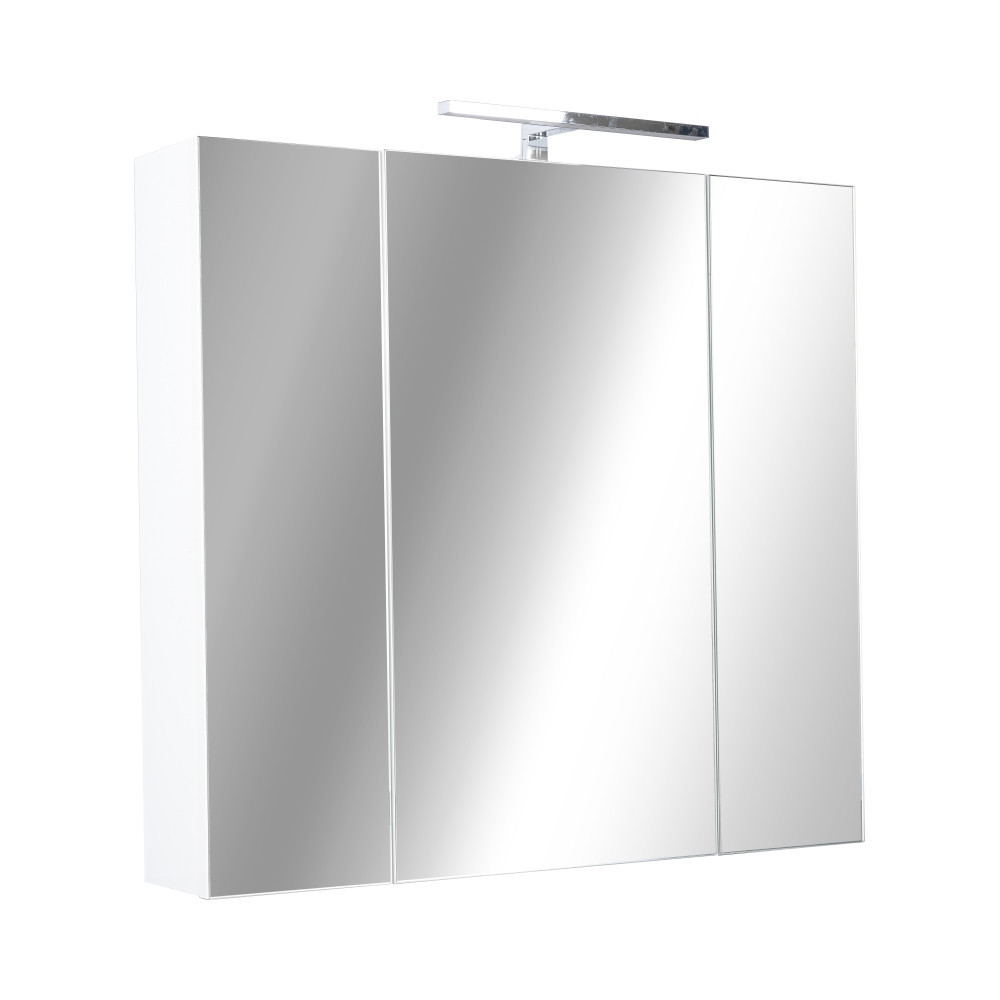 Piramida Akva tükrös szekrény magas minőségű MDF lapból készült fürdőszoba tükör. A LED világítás segít a mindennapi rutin elvégzésében. Eleje 3 külön-külön nyitható részből áll melyek polcokkal vannak ellátva.