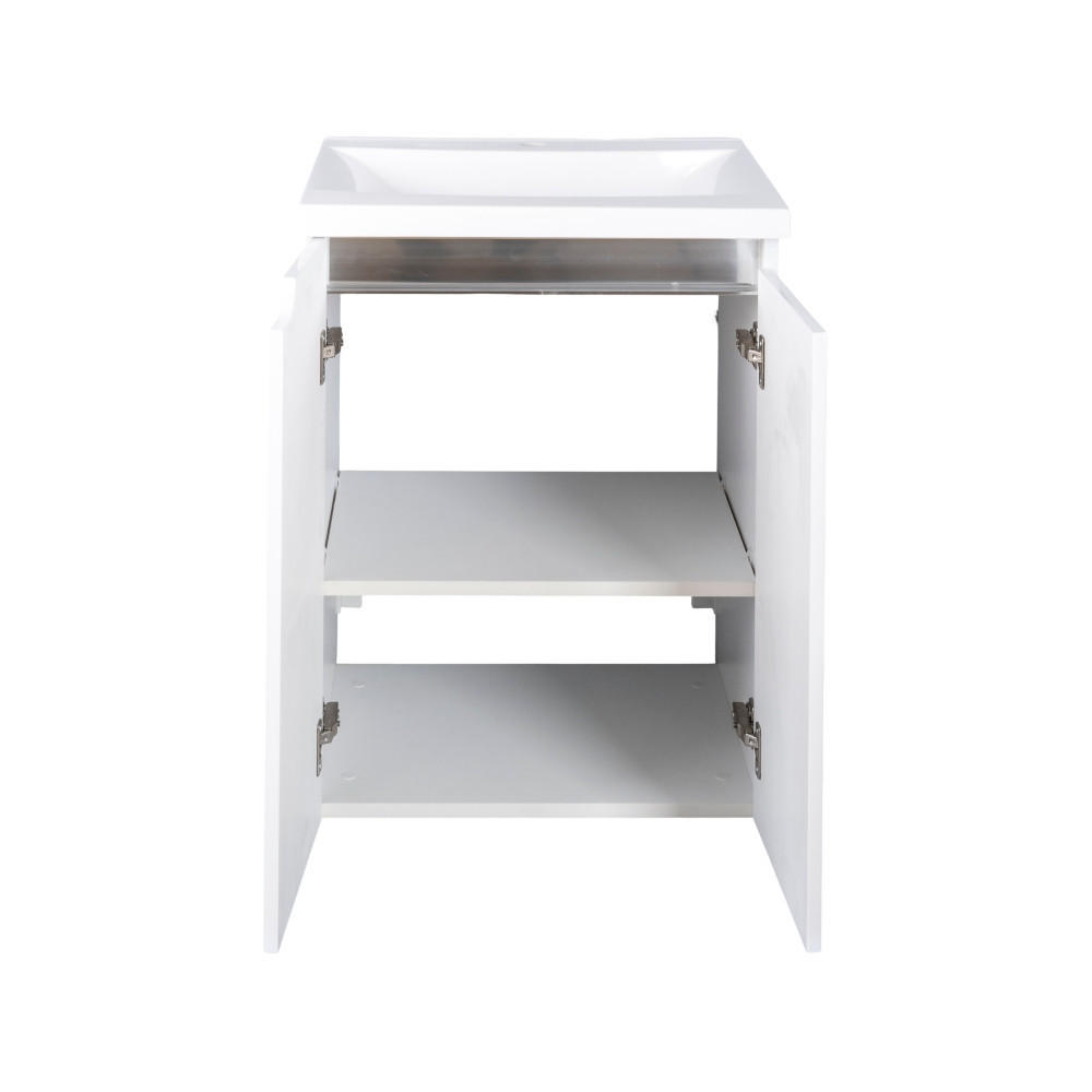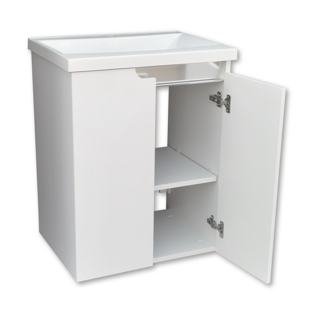 A Piramida EURIDIKA fürdőszoba bútor kevés helyet foglal viszont rendelkezik két tágas polccal ahol kényelmesen elférnek a fürdőszobai eszközök. A termék magasfényű festett fehér színben kapható. A fürdőszoba bútor felfüggesztet kivitelben kapható.