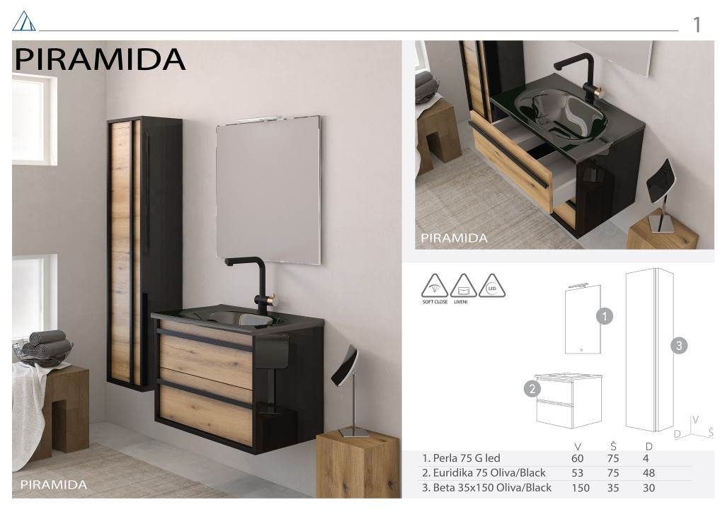 PIRAMIDA EURIDIKA OLIVA – FEKETE BETA fali függesztett fürdőszobai ÁLLÓSZEKRÉNY – 35 x 150