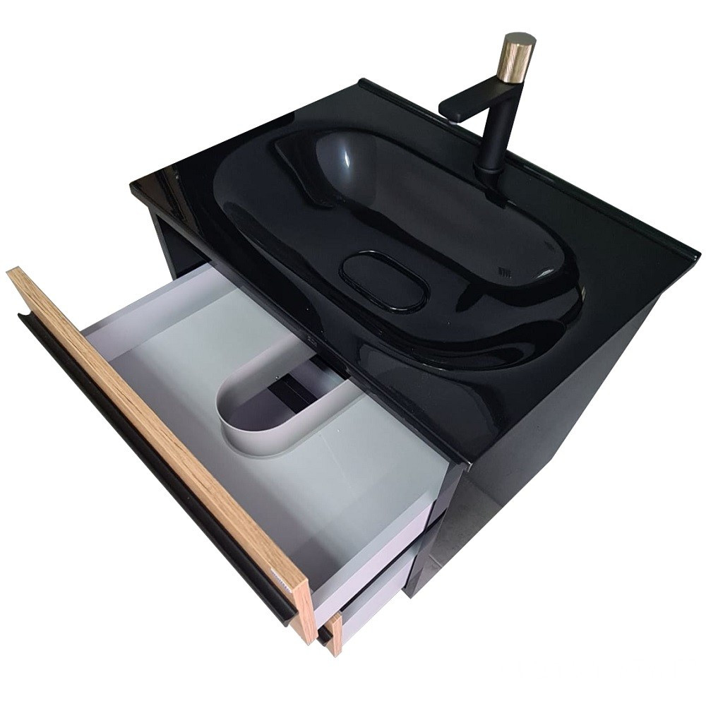 PIRAMIDA EURIDIKA OLIVA – FEKETE fali függesztett fürdőszobabútor fekete mosdóval – 65 x 53 x 48 cm