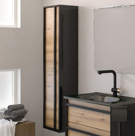 A Piramida EURIDIKA Oliva fürdőszoba bútor kevés helyet foglal viszont rendelkezik két tágas fiókkal ahol kényelmesen elférnek a fürdőszobai eszközök. A termék magasfényű festett fekete színben kapható.