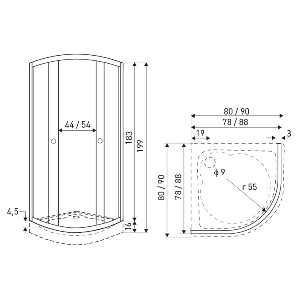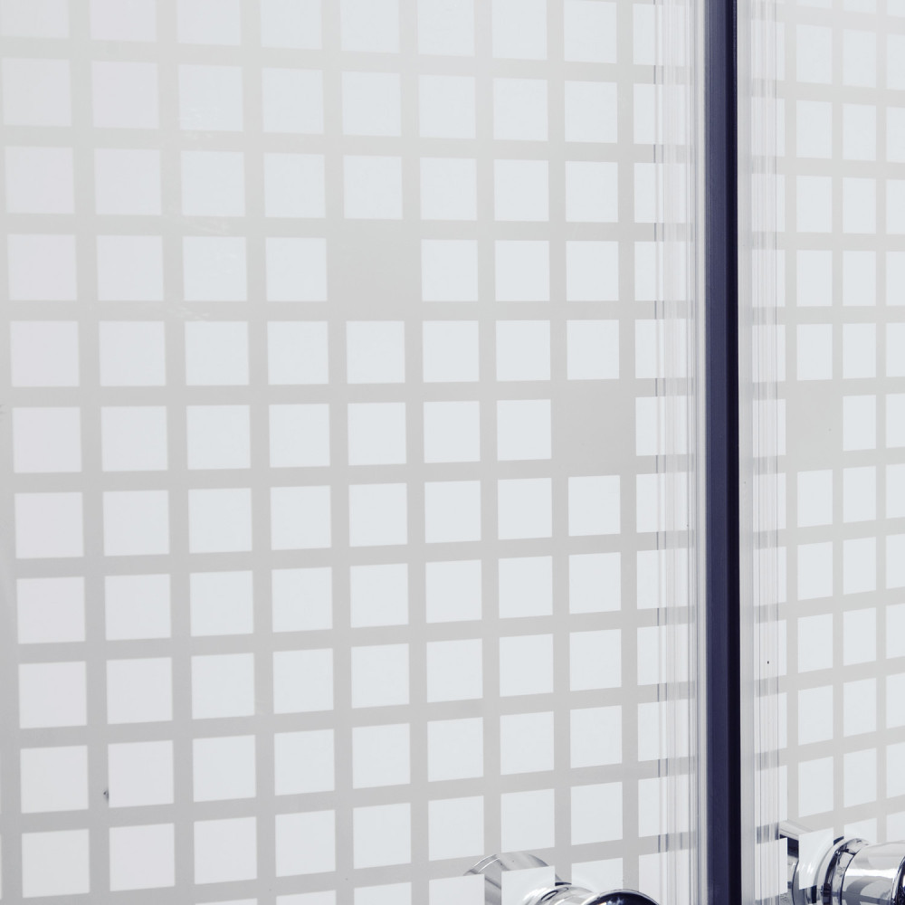 A zuhanykabin 4 mm-es edzett üvegből készült. Fehér dekor négyzetekkel díszített biztonsági üveggel van ellátva. A zuhanykabin íves kivitelben kapható. Dupla görgős ajtókkal van ellátva. A kabin 79x79x183 cm méretű (teljes magassága tálcával: 79x79x199 cm). A fehér akril zuhanytálca 79x79x16 cm!