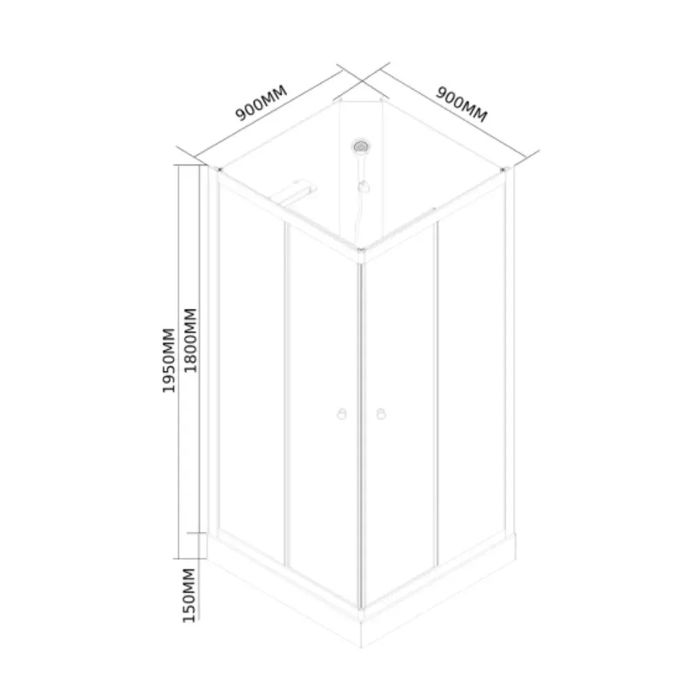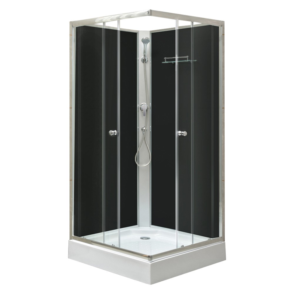Polo Black II szögletes fekete hátfalas zuhanykabin, akril zuhanytálcával, 90x90x195 cm-es méretben