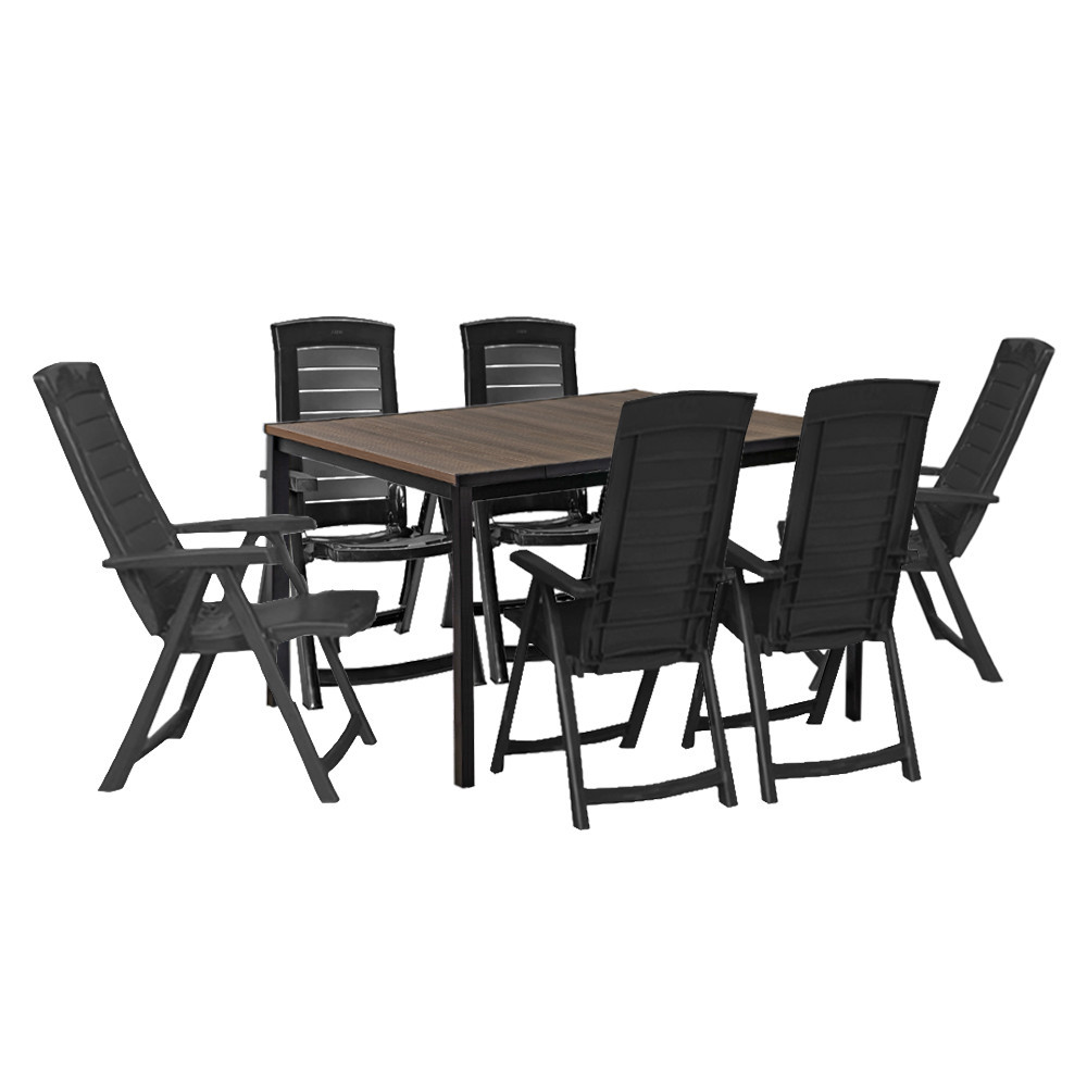 Portico 6+1 kerti bútor garnitúra szett dió-grafit – Időjárásálló, kényelmes és stílusos kültéri bútor szett