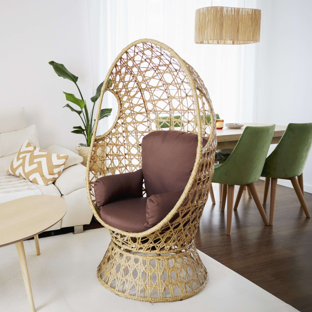 A pihenés kényelmének növelése érdekében a fotel ülőfelülete optimálisan profilozott. A fotel mély és magas ülőfelülettel rendelkezik, amely lehetővé teszi, hogy bármilyen helyzetben ellazuljon. A barna kosárfotel olyan fogantyúkkal rendelkezik, amelyek segítségével bárhová könnyen mozgatható. A kosár kényelmes párnával van felszerelve, amely karfákkal és puha háttámlával is rendelkezik. A párnák anyaga kellemes a bőrnek.