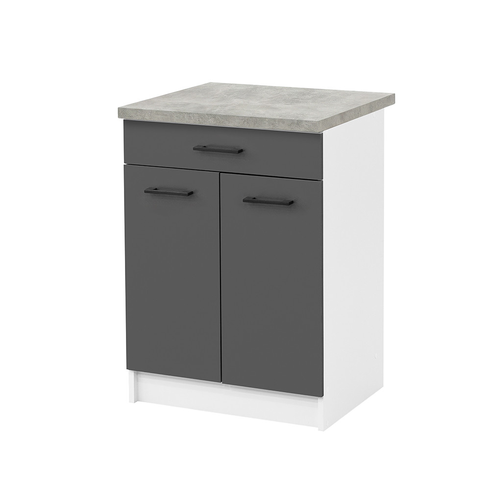 Praktik 60 alsó szekrény 2 ajtós 1 fiókos – fehér korpusz, antracit front