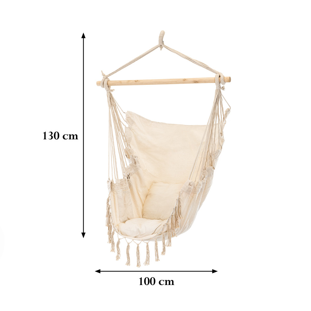A Puerto függőfotel kiváló választás, ha az otthoni kikapcsolódásra vagy egy stílusos kültéri kiegészítőre vágysz. A 330gsm poliészter-pamut anyagú párnákkal, minőségi tömőanyaggal, és díszes bojttal ellátva a Puerto függőszék nemcsak esztétikus, hanem rendkívül kényelmes is.