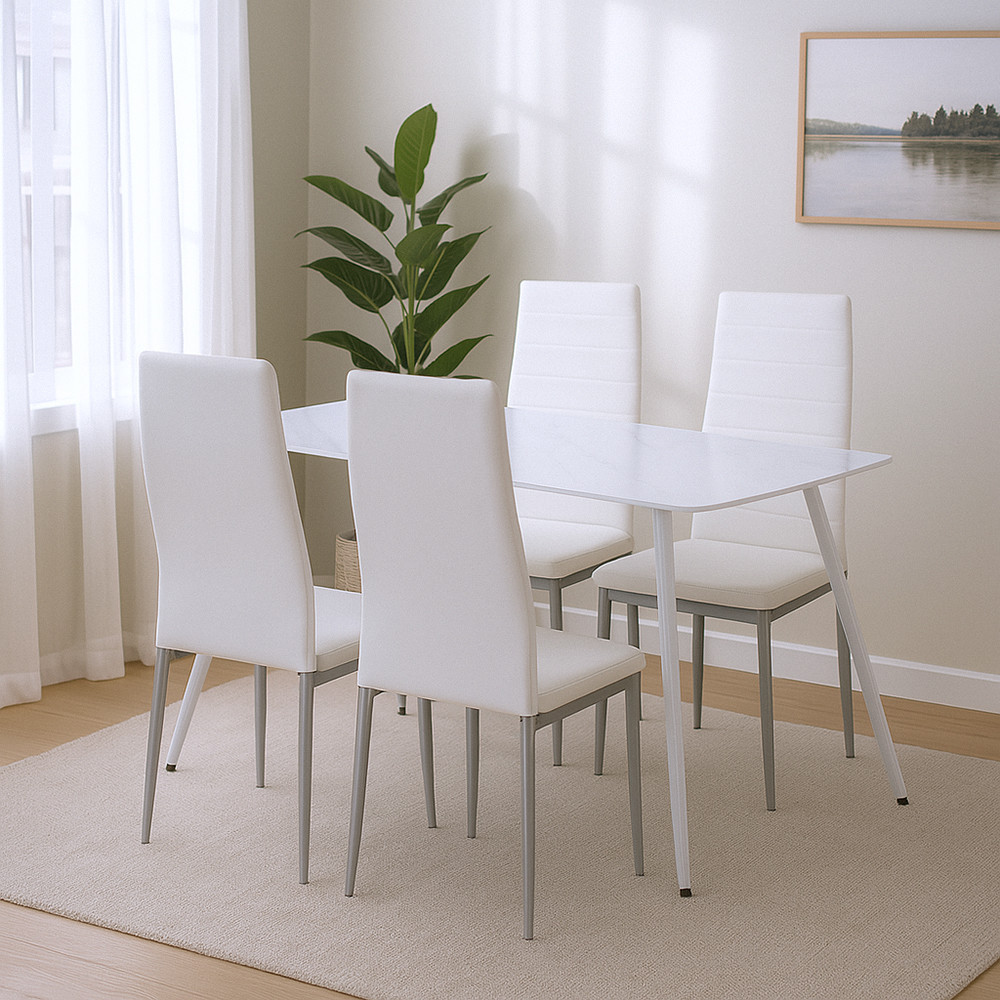 Renton 4+1 étkezőgarnitúra – Fehér-szürke modernitás, időtálló minőség