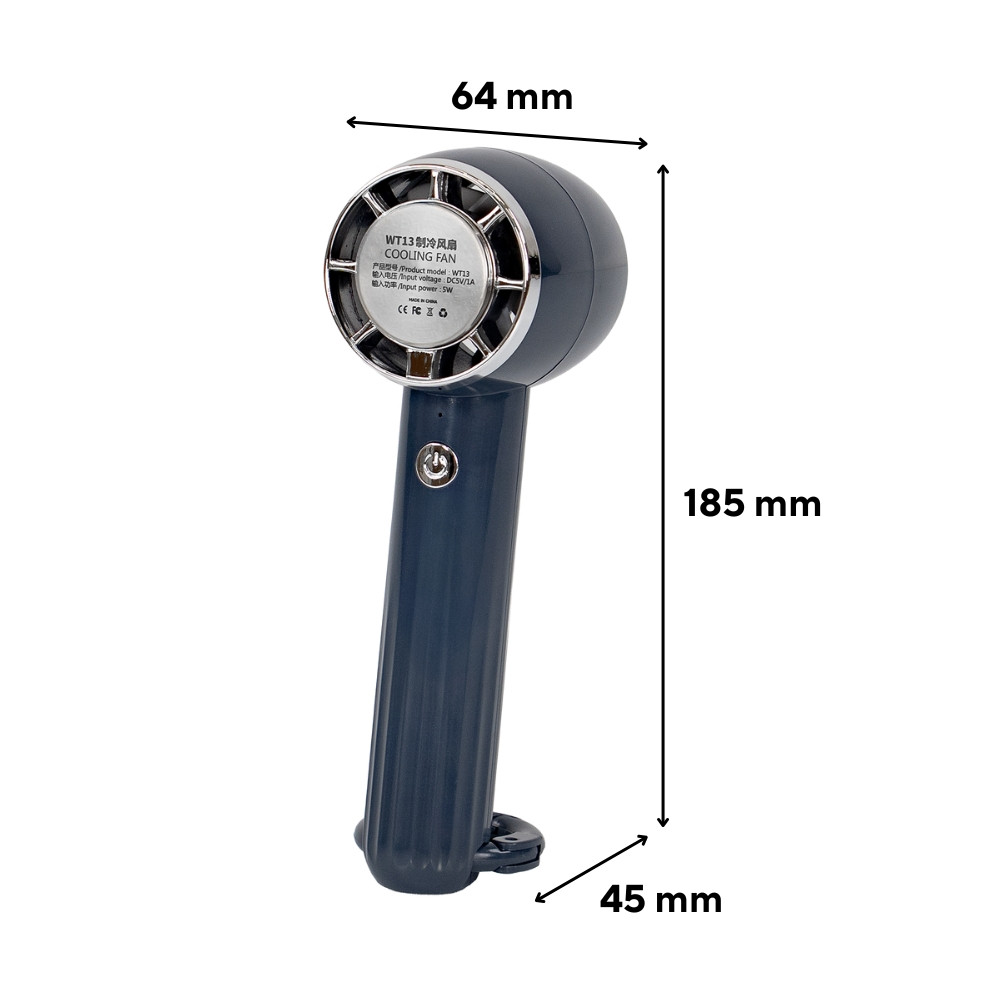 A ventilátor állítható döntési szögének köszönhetően nemcsak kézben használható, hanem stabilan az asztalra is állítható – így írás, munka vagy sminkelés közben is élvezheted a hűsítő hatást.