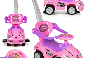 Ride-on autó tolóautó 3 az 1-ben deluxe fogantyúval és zenélő panellel rózsaszín