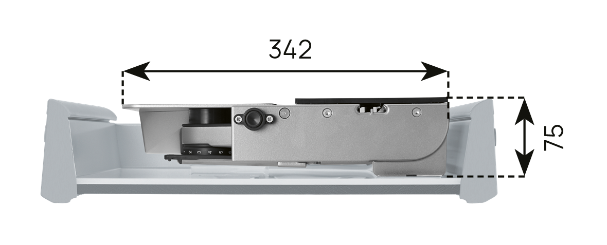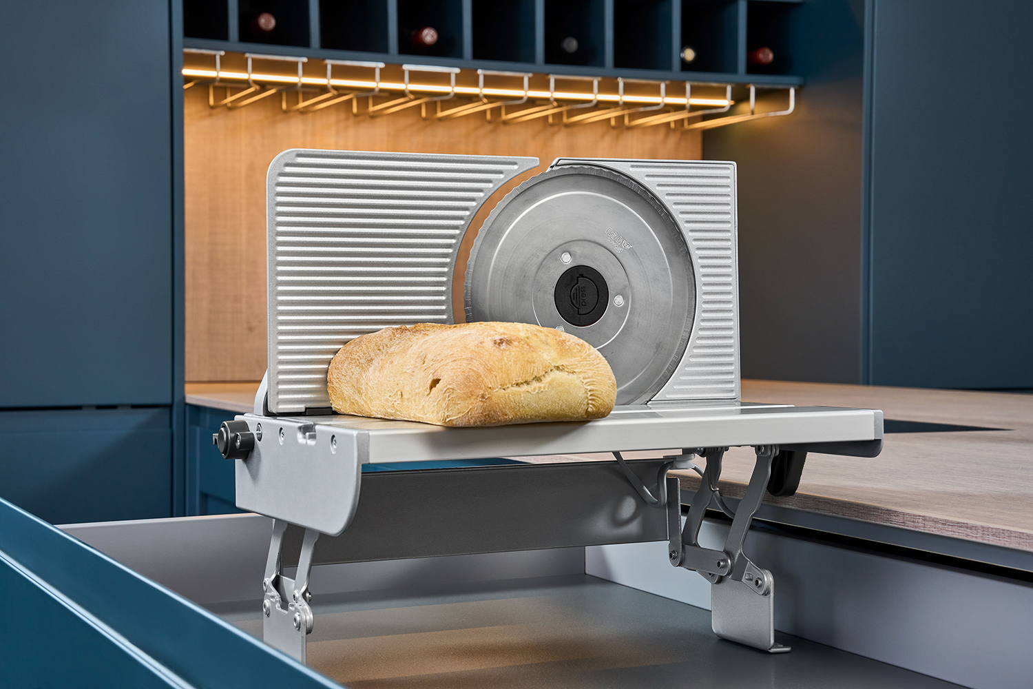 Ez a beépített szeletelőgép az optimális megoldás a pulttér felszabadítására. Ez a magas illeszkedésű verzió tökéletesen alkalmas fogantyú nélküli konyhákhoz vagy vastag munkalapokhoz.