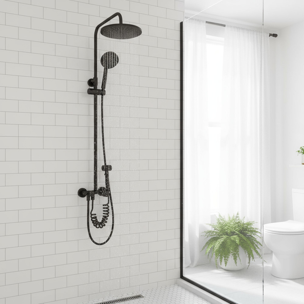 A Rivo zuhanyoszlop fekete kivitelben tökéletes választás modern, ipari vagy minimalista stílusú fürdőszobákba. Egyszerre sugároz eleganciát és praktikumot, miközben kompakt kialakítása miatt kis helyen is könnyen elfér.