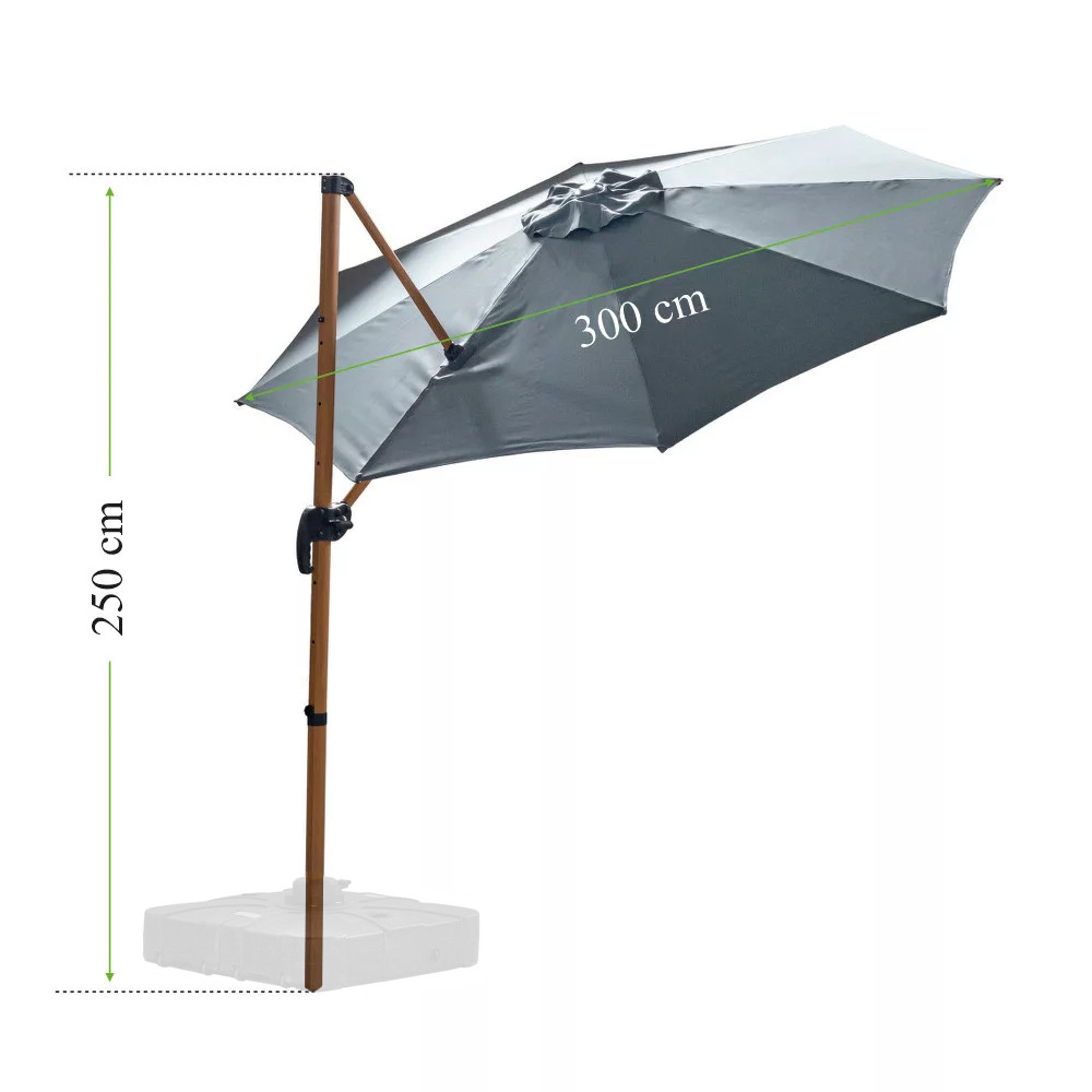 Az időtlen antracit szín tökéletesen illik a kertbe. A ponyva anyaga tömör és kiváló minőségű poliészter 180 g/m2. A napernyőt egy egyszerű mozdulattal össze- és széthajthatod a forgattyús mechanizmus segítségével. Előnye a tető dőlésszögének állíthatósága, így könnyedén igazítható a nap állásához. A Roma D kertje szerves részévé válik a meleg nyári napokon, és egyedülálló kiegészítője és praktikus kiegészítője is lesz. Könnyen karbantartható és könnyen tárolható.