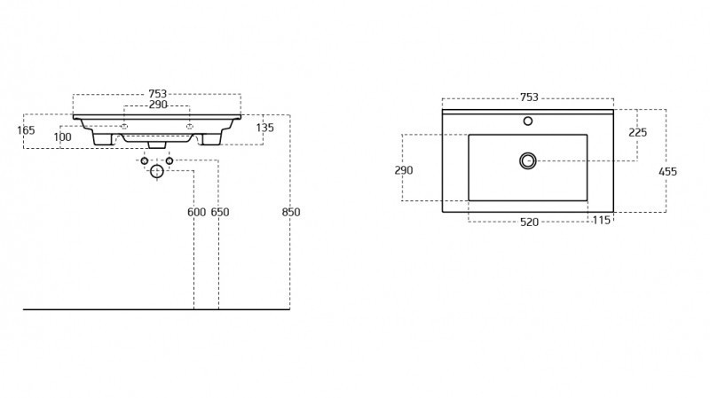 Bútorba építhető és falra is csavarokkal felszerelhető szögletes mosdó, amely kiváló minőségű kerámiából készül, így magas ellenálló képesség és tartósság jellemzi. A mosdó középen elhelyezkedő csapfurattal és túlfolyóval rendelkezik.