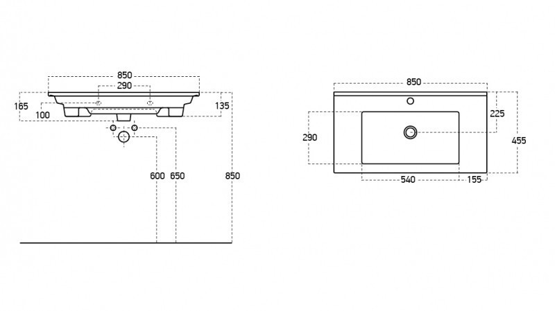 Bútorba építhető és falra is csavarokkal felszerelhető szögletes mosdó, amely kiváló minőségű kerámiából készül, így magas ellenálló képesség és tartósság jellemzi. A mosdó középen elhelyezkedő csapfurattal és túlfolyóval rendelkezik.