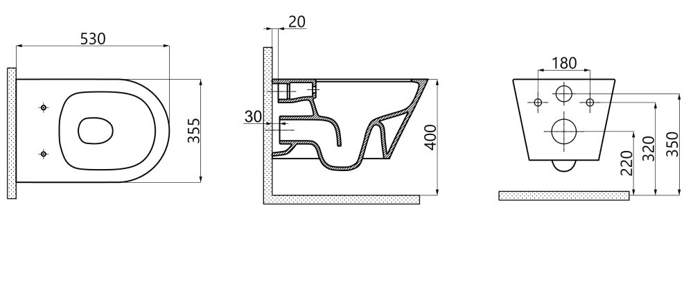 Sanovit AVVA fali WC mély öblítésű – rimless – perem nélküli – rejtett szerelésű