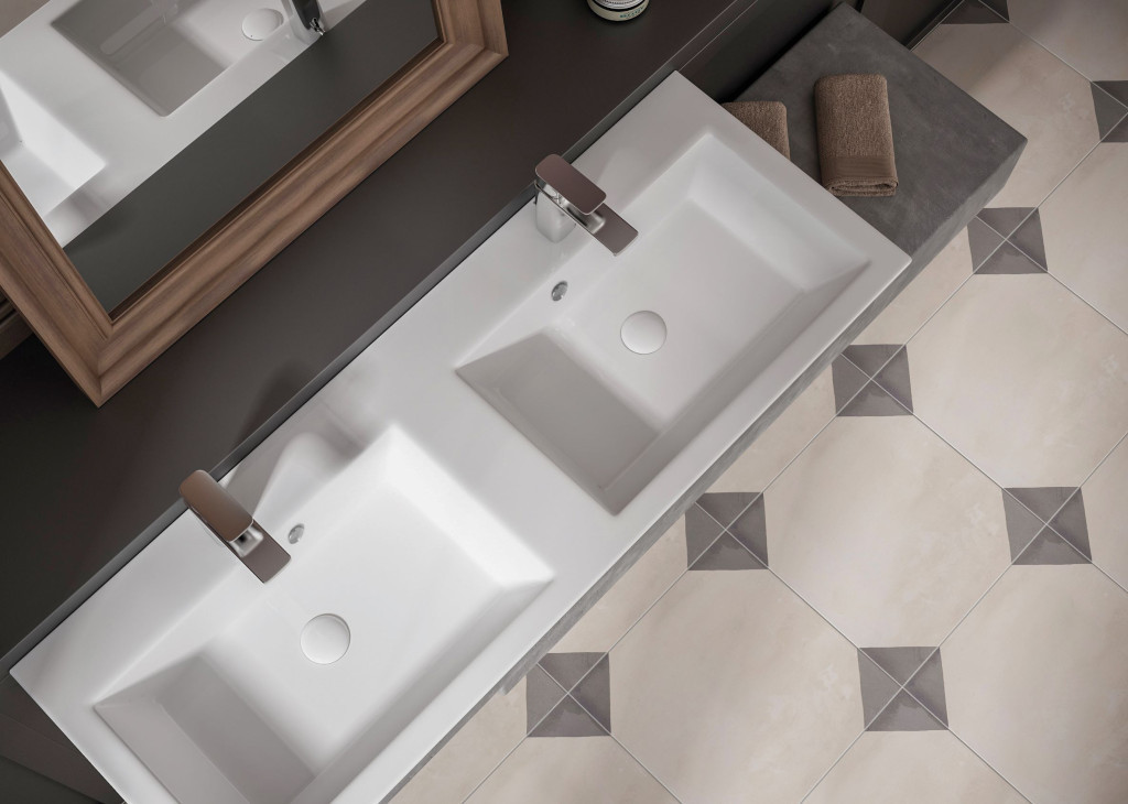 Pultba és bútorba építhető és falra is csavarokkal felszerelhető szögletes mosdó, amely kiváló minőségű kerámiából készül, így magas ellenálló képesség és tartósság jellemzi. A mosdó középen elhelyezkedő csapfurattal és túlfolyóval rendelkezik.