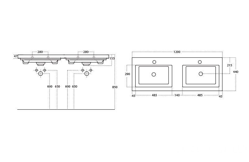 Sanovit ISIK porcelán mosdókagyló – dupla – 120 x 44 cm