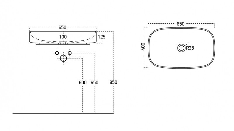 Sanovit MATTEO Top Counter pultra ültethető porcelán mosdókagyló 65 x 40 cm