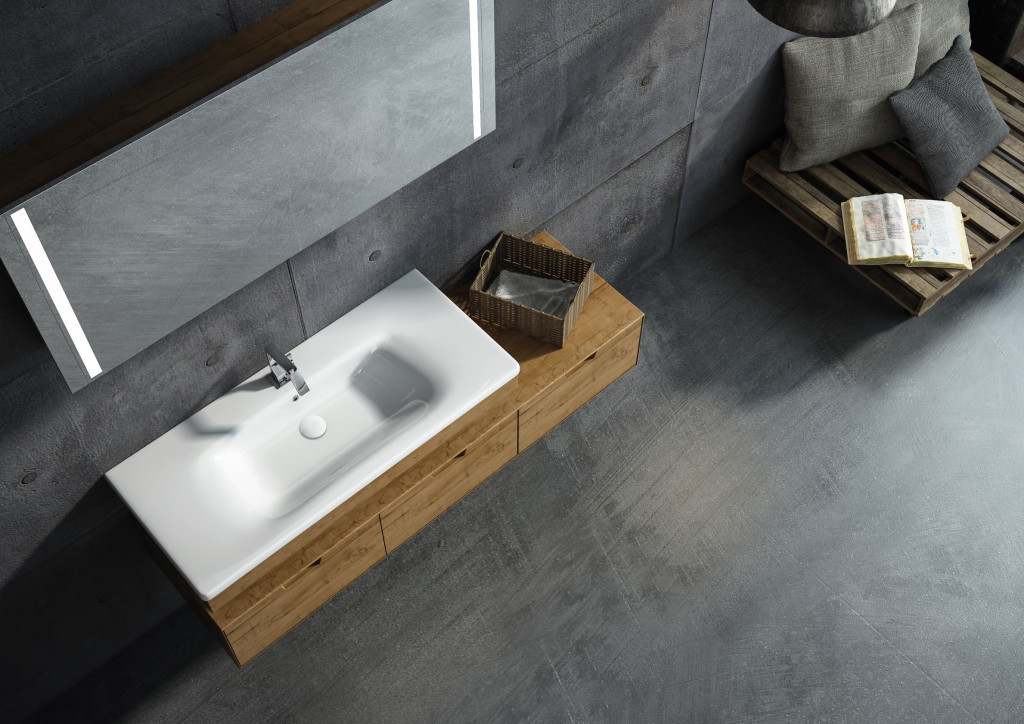 Kiváló minőségű kerámiából készül, így magas ellenálló képesség és tartósság jellemzi. A mosdó középen elhelyezkedő csapfurattal és túlfolyóval rendelkezik. A mosdó intelligens kerámia bevonattal van ellátva, aminek hatására a szennyeződés nehezebben tapad meg a felületen, valamint nem sárgul és öregszik el. A mosdókagyló hátsó része máz nélküli, ezért a beépítést falhoz közel ajánljuk.