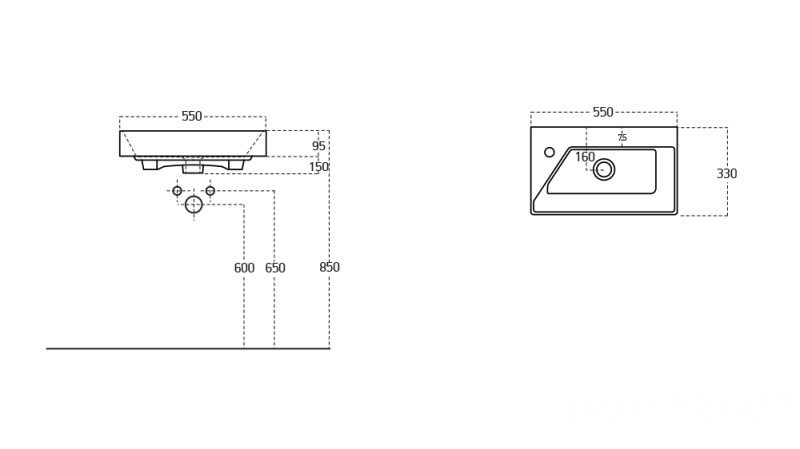 Sanovit STANCE porcelán mosdókagyló – bal csaplyukas – 55 x 33 cm