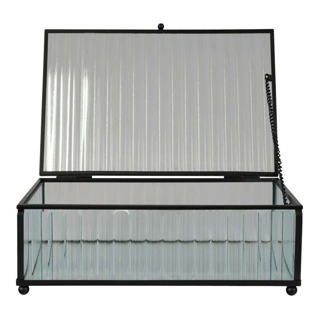 Santorini díszdoboz – üveg és fém letisztult eleganciában ???? Méret: 20 × 13 × 7 cm ???? Anyag: átlátszó üveg és fekete fém ???? Szín: fekete keret, átlátszó üvegfal ???? Szállítás: biztonságos csomagolásban, sérülésmentes kézbesítéssel Ez a díszdoboz nemcsak dekoráció – hanem rendszerező is. Legyen szó apró emlékekről, gyertyákról, kagylókról, szárított virágokról vagy ékszerekről, ez a doboz méltó helyet ad mindennek, ami fontos. Az üveg áttetszősége miatt a benne tárolt tárgyak mindig a figyelem középpontjába kerülnek. ???? Különleges előnye: Minimalista formája és fekete fém kerete kortárs karaktert kölcsönöz bármilyen enteriőrnek – legyen az modern, ipari vagy klasszikus. Ajándékként is tökéletes.