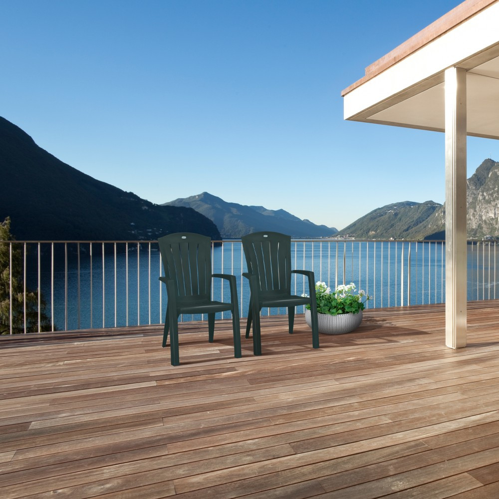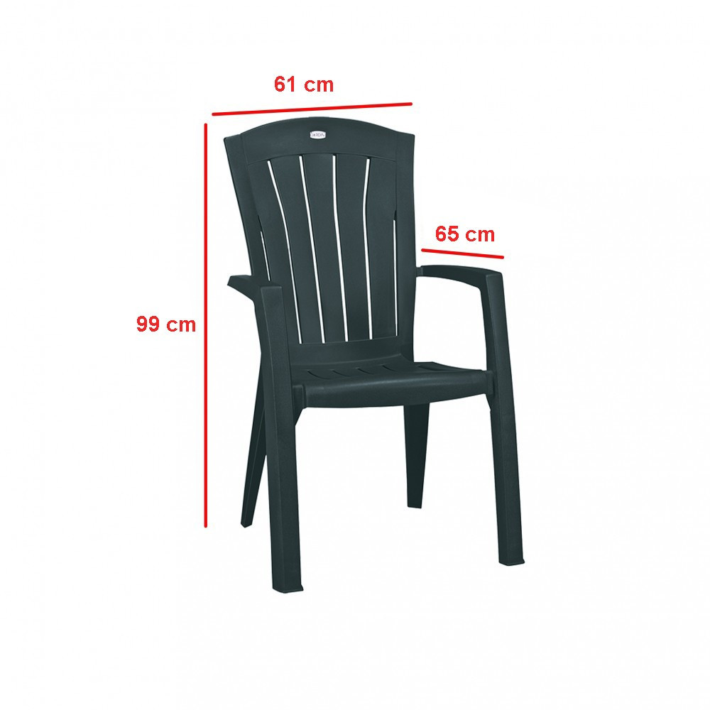 Műanyag karosszék Santorini kényelmes pihenést kínál köszönhetően az elég széles kartámaszoknak. Egyzserű és modertn kinézeténköszönhetően minden környezetbe tökéletesen passzol.