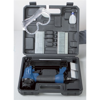 Tűzőgép és szögbelövő készlet praktikus kofferban Felhasználási terület: deszkák, lécek, szigetelő anyagok, fóliák, lambériák stb. rögzítéséhez Használható szeg típus 18 Ga (bognár szeg): 15-50 mm Egyszerű mélységbeállítás, optikai kémlelés Tárfeltöltés szükségessége: igen Kapocs hossz: 16-40 mm Kapocs szélesség: 5,7 mm Üzemi nyomás: 8,3 bar Levegőigény lövésenként: 1,5 l Forgatható levegő elvezetés: 360 °-kal forgatható Csúszásgátló markolat: igen Tartozékok: 1000 db szeg, 1000 db tűzőkapocs, 2 x imbuszkulcs, zsírzógomb, olaj, védőszemüveg: igen Súly és méretek Súly (kg): 1.20 Méretek: Magasság (m): 230.00 Hosszúság (h): 240.00 Szélesség (sz): 55.00