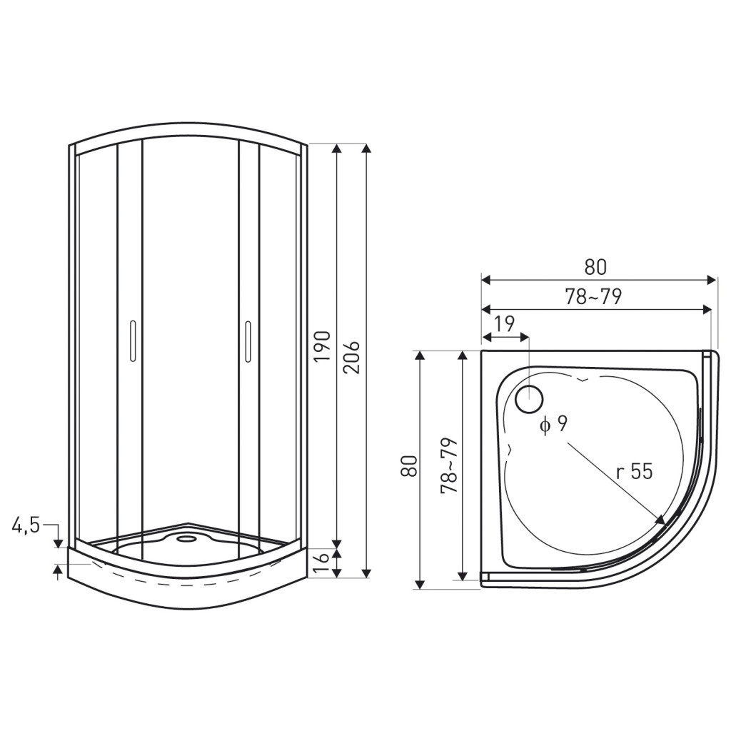 • Zuhanykabin mérete: 80 × 80 × 206 cm